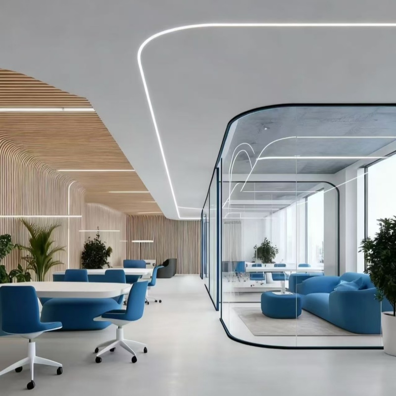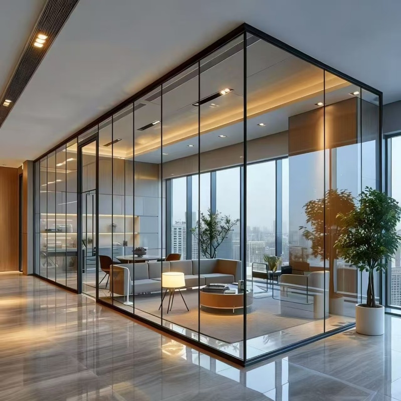 1. Эффективное использование пространства: делит пространство на отдельные зоны (например, переговорные и офисы), не блокируя свет, создавая ощущение простора и простора в небольших помещениях.